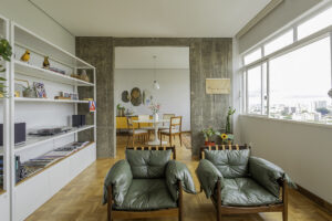 No Estúdio Barbara Dutra buscou-se a criação de um espaço de trabalho que trouxesse também uma atmosfera doméstica, como de um loft. O espaço conta com mesas de trabalho, copa e bancada para lanches e cafés, um hall de espera aconchegante, que pode servir também para pequenas reuniões e encontros, além do espaço reservado para fotos em estúdio. As cores predominantemente neutras dão lugar, pontualmente, a alguns detalhes marcantes e fortes, que garantem personalidade ao estúdio. Por fim, a presença de vegetação ao longo do espaço traz mais alegria e vida aos ambientes.